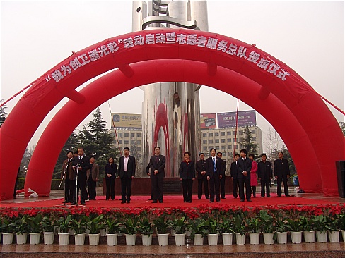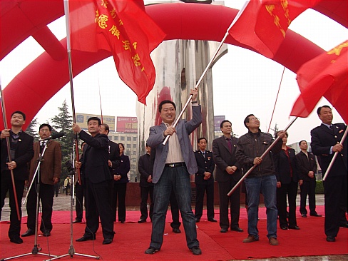4月1日,我院部分师生参加了由市委宣传部、市文明办、市志愿者协会共同举办的“我为创卫添光彩”活动启动暨志愿服务总队授旗仪式。仪式在城区中心广场举行,副市长魏稳柱给我院授旗。