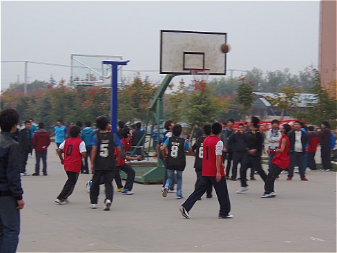 球场上,队员们相互配合,积极攻防;球场边,同学们掌声阵阵鼓励参赛同学。最后,高教处篮球队获得第一名。