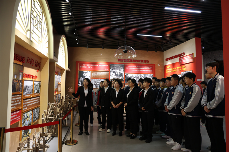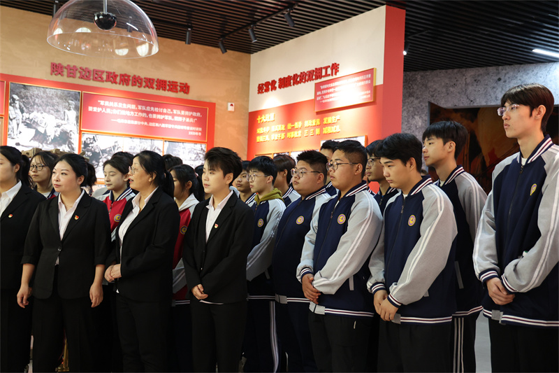 该展览馆通过丰富的史料、珍贵的物件和生动的图文,从民拥军、军爱民、军民共建等层面展现了不同时期军民团结的鱼水之情。讲解员以党史为主线,讲述了百年来革命功勋人物和渭南市军政军民同心筑梦的故事。学生们深刻理解了革命历程的艰辛与伟大,感受到革命先辈们的爱国情怀和革命精神;了解到在中国共产党领导下,人民军队与人民群众之间的鱼水深情;感悟到在军政军民团结奋斗下,渭南地区双拥工作的发展历程和取得的辉煌成就。