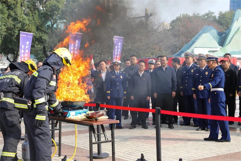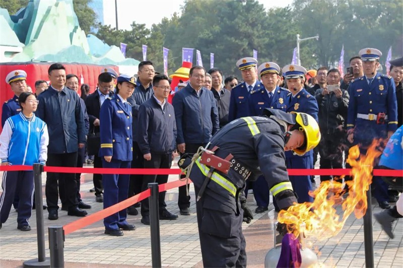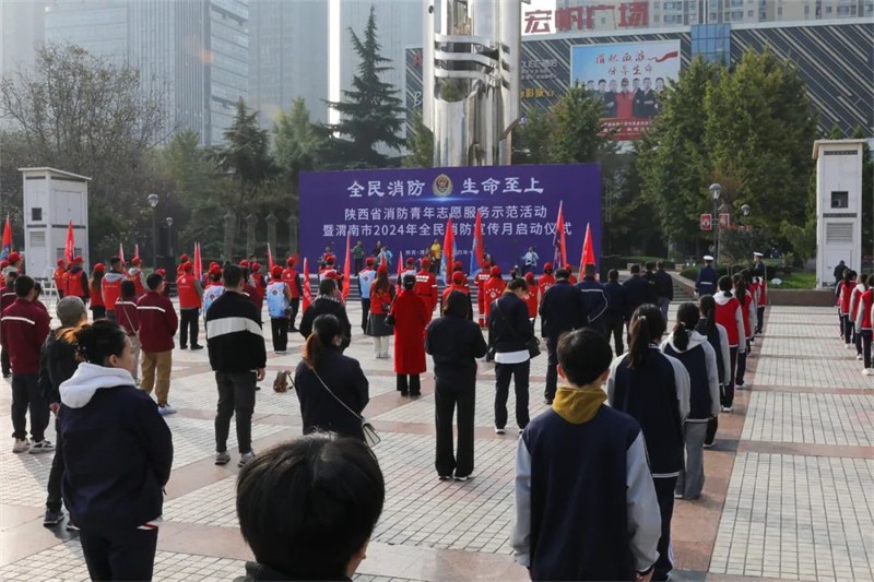 为积极响应国家关于消防安全的重要号召,贯彻落实学院安全工作“十个一”专项行动,增强学生消防安全意识与应急自救能力,11月5日上午,学院团委组织50余名团学干部,在渭南市中心广场参加陕西省消防青年志愿服务示范活动暨渭南市2024年全民消防宣传月启动仪式,团委副书记杨晓琪,保卫处负责同志及团委全体老师共同参加。
