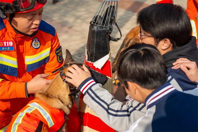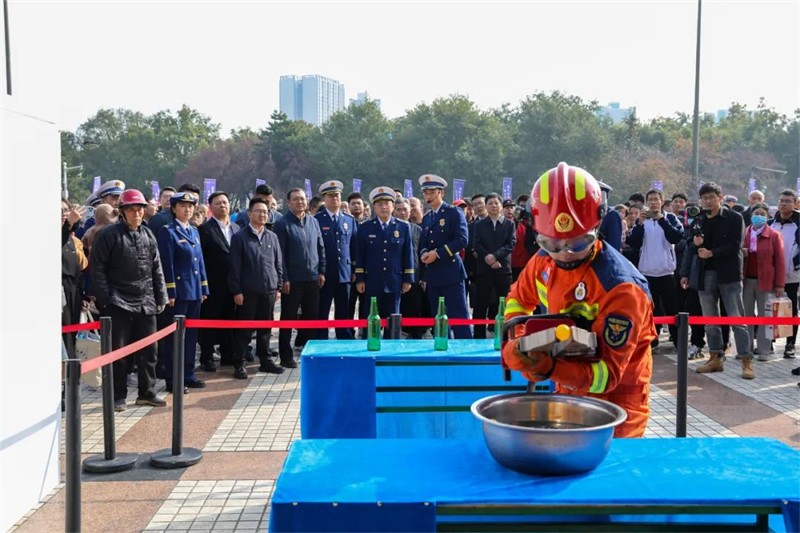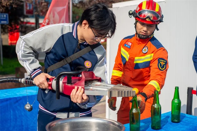 同学们现场认真观看了消防装备展示区,学习了初期火灾扑救、火场逃生自救等消防安全知识,亲身体验了模拟火场逃生、消防器材使用等实操环节,同时消防官兵们进行了精彩的消防技能展示,包括灭火救援、液压扩张钳夹乒乓球、灭火机器人等,让围观学生及观众大开眼界。