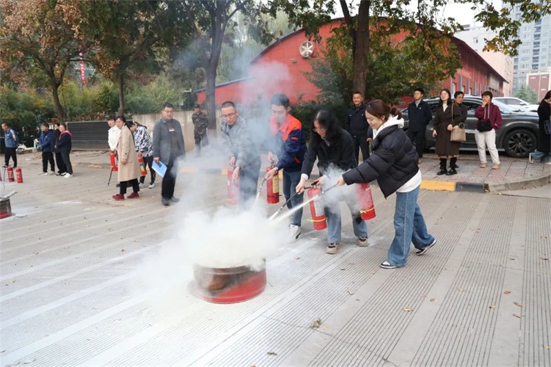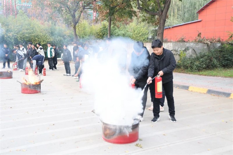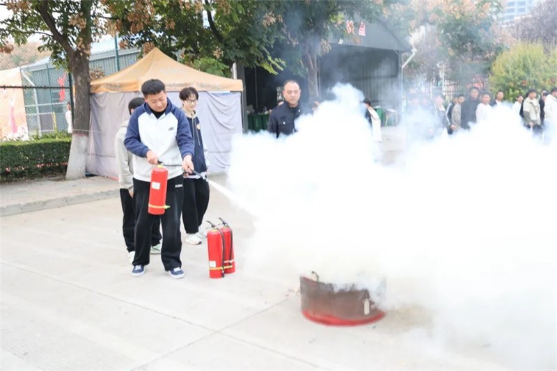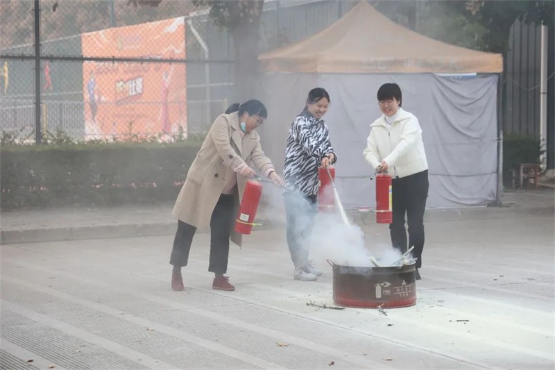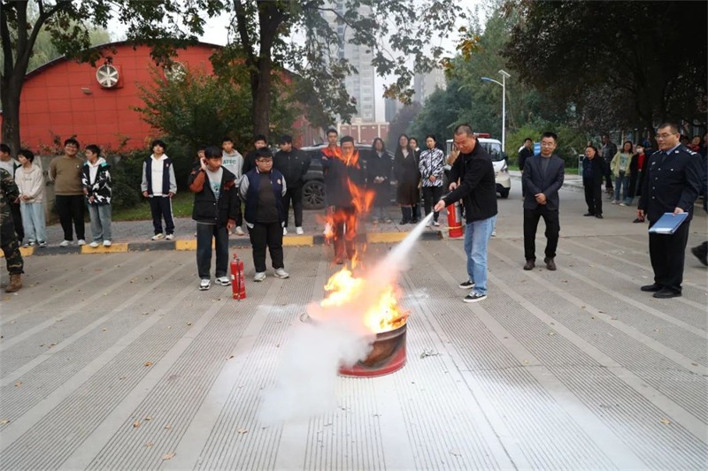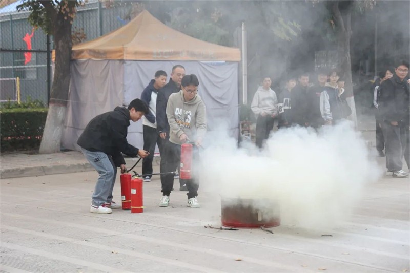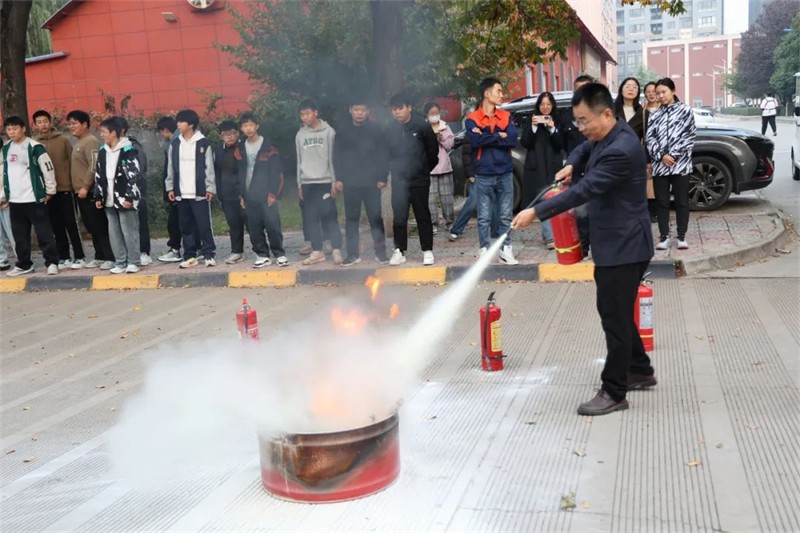 活动现场,保卫处处长李向阳以校内外真实发生的火灾案件为例,向师生详细讲解了常见的消防安全隐患、灭火器的正确使用方法以及火灾、地震发生时的应急处理办法,强调火灾发生时应保持沉着冷静,以科学的方式保护自己的人身财产安全。同时,对灭火器的操作流程进行了详尽的讲解和示范,随后师生们分成小组,手持灭火器依照操作流程迅速扑灭了火焰。现场实践活动大大提升师生突发事件应对处置能力,最大限度预防和减少了事故造成的危害和损失。