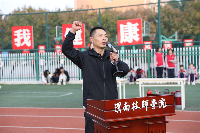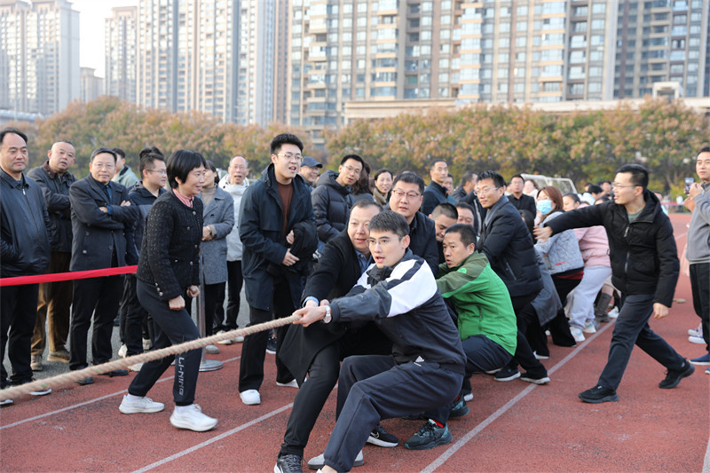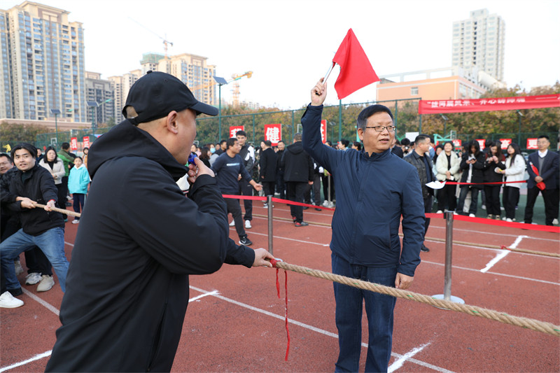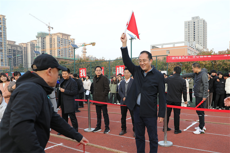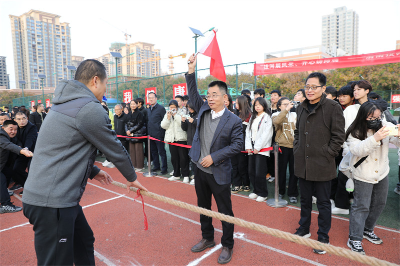 张君升在讲话中指出,教职工拔河比赛是学院的盛事,是展现教职工风采的舞台,是力量的较量,更是团队精神的考验。在学院的发展历程中,团队精神如同拔河之绳,将我们紧紧相连。学院每位教职工在不同的岗位上为学院默默付出,如同拔河赛场上的队员,各自发力,又相互配合。他希望大家将在赛场上的拼搏精神和团队意识带回工作中,齐心协力,为学院的教育事业和学生的成长成才而努力。