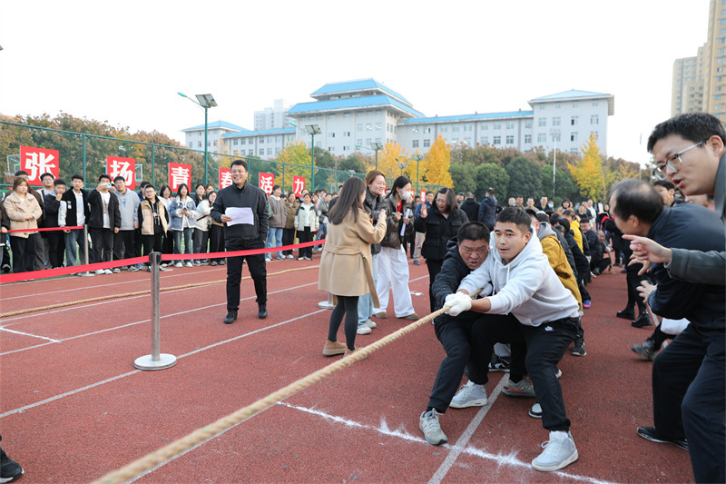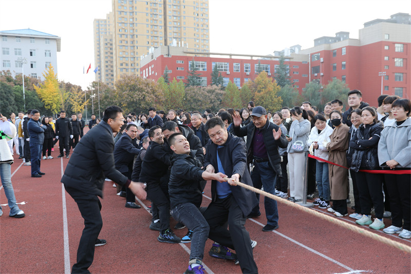 11月20日,学院工会办组织开展了“拔河展风采、齐心铸师魂”教职工拔河比赛,学院党委副书记、院长张君升,党委副书记蔡小伦,党委委员、副院长胡忠民、张卫龙,党委委员、工会主席李瑞芳参加,张君升做开赛式讲话并宣布比赛开始。