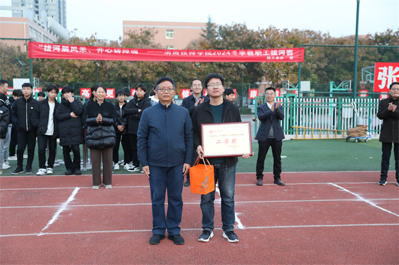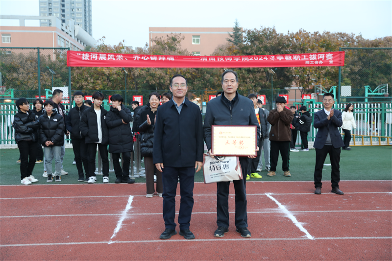 本次拔河比赛共有来自学院22个部门的230余名队员参赛。由体育教研室主任杨永担任比赛裁判长,比赛在公平公正、热闹祥和的氛围中展开。 在比赛中,各路队伍群雄逐鹿,场面蔚为壮观。参赛教职工们精神焕发,斗志昂扬。每个人都怀揣着对胜利的渴望,在赛场上挥洒汗水,展现风采。经过多轮激烈的比拼,教职工们充分展现了顽强的拼搏精神和团队协作的力量。他们相互鼓励,为了团队的荣誉而奋勇拼搏。最终生产实训处联队(图书馆、综合高中)凭借出色的发挥和默契的配合,成功夺得冠军,机械工程系夺得亚军,教务处夺得季军,学院领导现场为获奖代表颁发了奖牌和奖品并表示了祝贺。