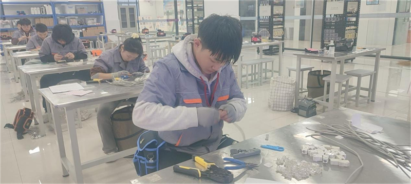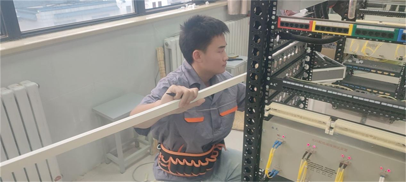网络布线作为电信工程系重点建设赛项,已成功申报信息网络布线(世赛选拔)省级集训基地。指导教师团队由大赛参赛和执裁丰富经验的汪杰和王磊老师组成。本次比赛内容包括网络布线速度竞赛、光纤速度竞赛、配线子系统、电脑绘图和理论考核,共5个模块。理论模块首次采用线上APP题库随机抽题模式,由上海企想信息技术有限公司提供技术支持,自动评分功能提高了评判的公平性、准确性和工作效率。通过理论与实操的有机融合,全面考核选手的综合职业能力。