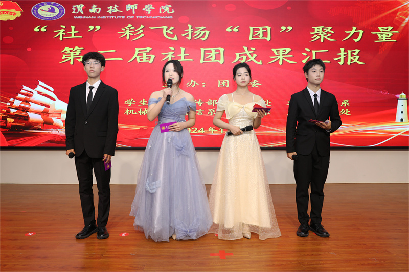 为贯彻落实学院党委“112336”工作思路,持续推进思想铸魂立德树人建设工程,深入开展学生“十个一”落实落地。2024年12月12日,“社”彩飞扬,“团”聚力量——学院第二届社团展演圆满落幕。党委书记曲志勇,党委副书记、院长张君升,党委副书记蔡小伦,党委委员、副院长石晓兰,党委委员、工会主席李瑞芳出席活动,各党支部书记、各部门负责人、社团指导教师共200余名师生现场观看了展演。本次展演采取现场展演和网上直播的方式同时进行,直播观看人数达6399人,点赞量超11.4万次。