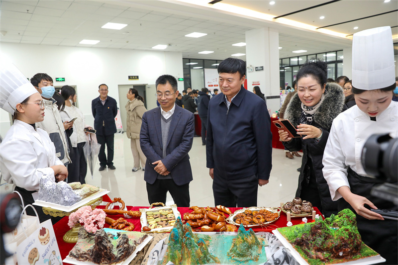 在社团作品展示区参观时,学院领导们对手工、文创设计工坊、烘焙、焊接等社团一件件新颖别致的作品赞赏不绝,对社团成果表示高度肯定和评价。