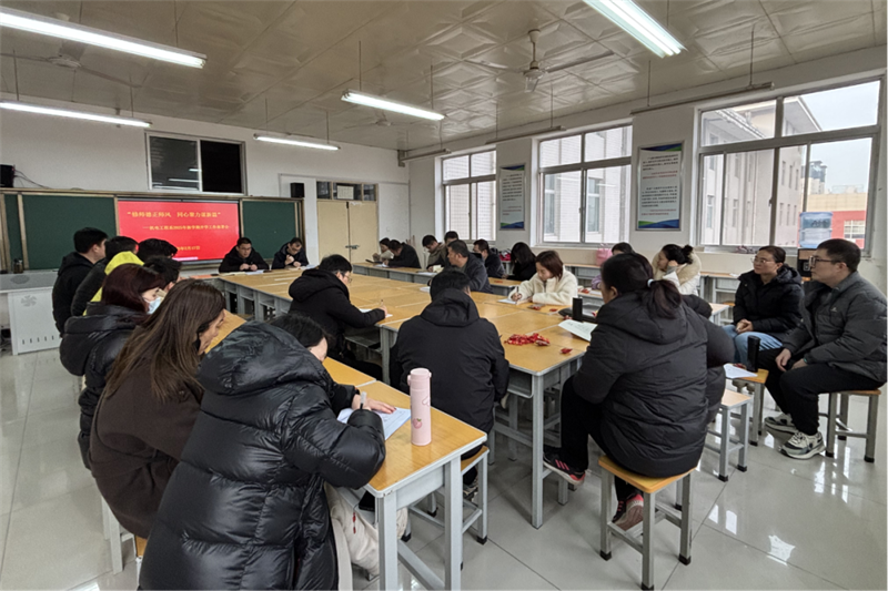 会议伊始,教学管理科副科长袁蒙带领全体教师深入学习习近平总书记在全国教育大会上重要讲话和《中共中央 国务院关于弘扬教育家精神加强新时代高素质专业化教师队伍建设的意见》文件精神,激励广大教师坚定心有大我、至诚报国的理想信念。史盼盼回顾了2024年机电系各项工作,要求全体教师以“师德师风承诺书”为准则,自律自省,坚守高尚师德。他讲到,本学期要严格课堂纪律,抓好各项常规教学,营造良好的教学氛围。开展形式多样的教学研讨活动,观摩教学与深度评课,强化教学检查,确保教学严谨性。加强以赛促教,在董文娟老师引领下推进教学比赛,鼓励年轻教师积极参赛,以“主人翁”精神融入机电大家庭,在专业领域施展才华。