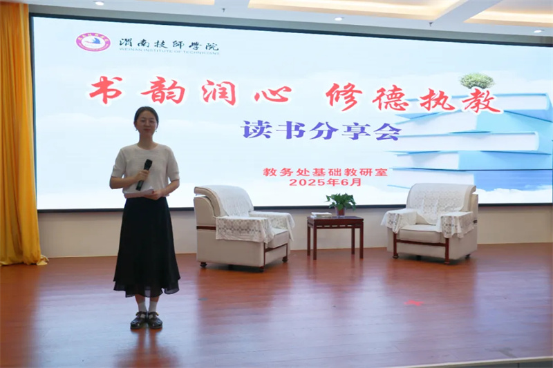 为激发教师的读书热情,打造书香校园的文化氛围,近日,教务处基础教研室在产教融合楼二楼举办了以“书韵润心·修德执教”为主题的读书分享会,本次分享会主要围绕吴非老师《致青年教师》中的教育理念,结合分享教师的个人经验两个方面,以谈话和分享两部分组成。