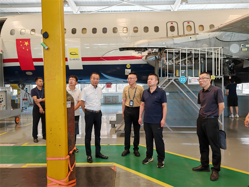 陕西金宇航空科技有限公司成立于2009年,是一家从事航空领域业务的专业公司,是国家高新技术企业、民航维修协会会员单位,已与多所高校协同开展航空领域人才培养。 在金宇航空公司总经理冉磊的陪同下,考察组一行参观了金宇航空的实践基地和培训中心,对空客A320飞机、多旋翼中型无人机以及民航维修实训设备进行了细致考察,冉磊就民用航空器维修培训资质、民用航空器维修人员基础执照考点运行、无人机驾驶执照培训及证书获取等相关情况做了详细介绍。