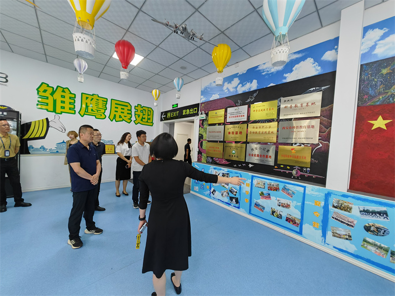 考察组随后来到公司雏鹰展翅研学基地,该基地是金宇航空在“学旅结合、文旅互促”新模式下的创新实践,集教育研学、科技体验、飞行探秘和体育竞技为一体,有机场模拟沙盘,VR沉浸式航空体验,模拟飞行等研学项目和实际操作,让大家对航空知识有了更深刻的认识。