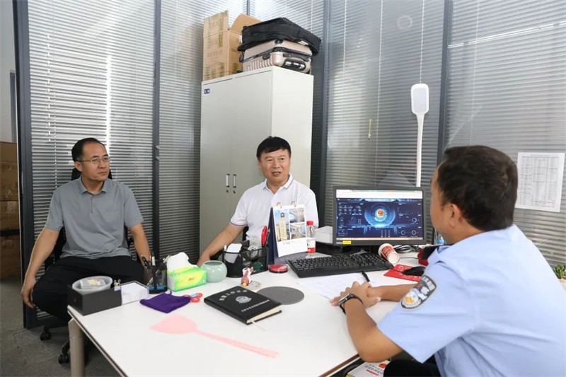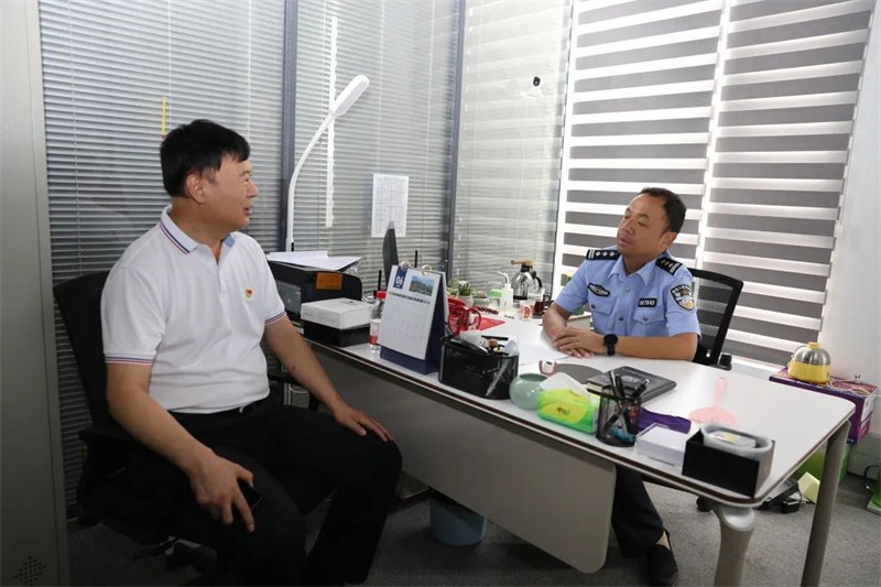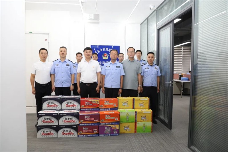 炎炎夏日送清凉,警校情深暖人心。7月25日上午,为感谢崇业路派出所一直以来对学院平安校园建设工作的大力支持,学院党委书记曲志勇、党委副书记蔡小伦一行, 专程来到崇业路派出所,亲切慰问了全体民警,并送去夏日防暑降温物品。崇业路派出所副所长王俊代表全体警务人员接待了学院领导。党政办、学生处、保卫处等相关负责人参加慰问活动。