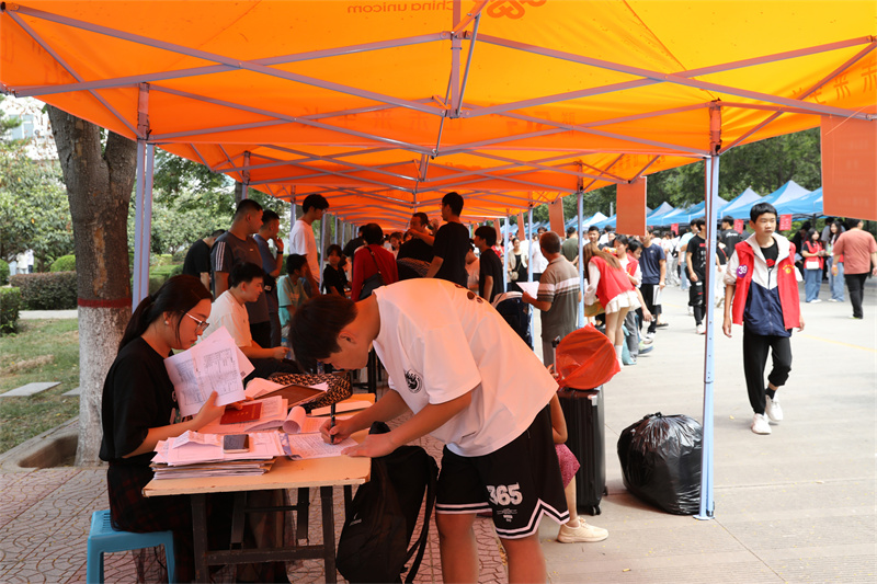 沉寂了一个夏天的校园 像被按下了“播放键” 志愿者的热情指引 行李箱轻快的滚轮声 此起彼伏的问候声 处处是活力,处处是温暖!