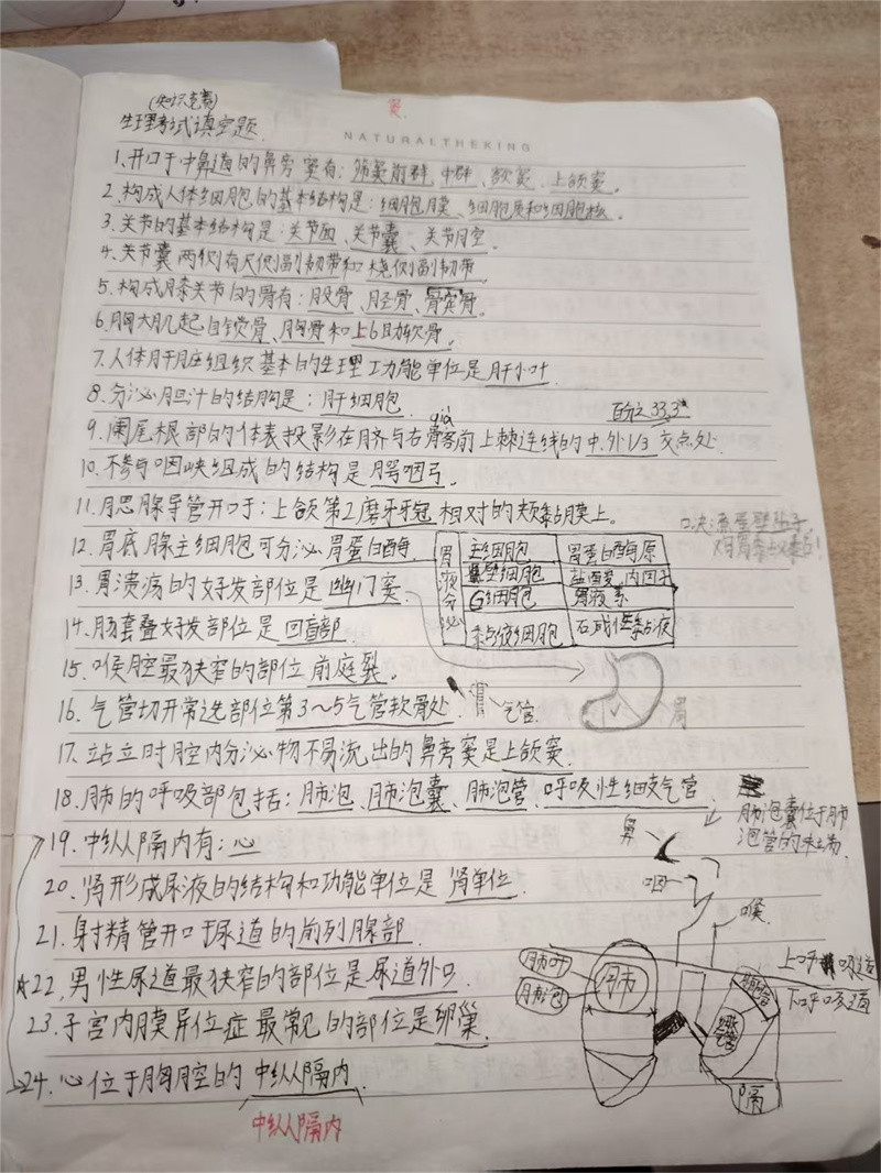 线下决赛,围绕专业核心考点命题,题型多样,考查学生对理论知识的理解与应用能力。为助力学生高效备赛,教研组提前将竞赛题库上传至微讲师平台,引导学生利用课余时间学习巩固,并通过建立个人错题库强化薄弱知识点识记。决赛现场,同学们专注审题、规范作答,整场竞赛组织规范、秩序井然。护理2501班张博皓、刘玉婷、段茹璐同学分别斩获竞赛前三名。