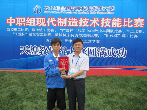 六月的天津,国人瞩目。六月的天津,捷报频传。在天津举行的“2011年全国职业院校技能大赛”中,我院宜渭锋同学代表陕西省参加中职组现代制造技术比赛。经过激烈角逐,顽强拼搏,荣获数控车项目比赛二等奖,这是陕西省参加全国职业院校技能比赛数控车项目取得的历史最好成绩。同时,我院参加“全国职业院校学生技能作品展洽会”也传来佳音,参展的六件学生技能作品,分别获一个二等奖、两个三等奖、三个优秀奖。 本届大赛由教育部、天津市人民政府、人力资源和社会保障部、工业和信息化部、住房和城乡建设部、交通运输部、农业部、文化部、卫生部、国务院扶贫办、中华全国总工会、共青团中央等16家单位共同主办。 中共中央政治局委员、国务委员刘延东,中共中央政治局委员、天津市委书记张高丽,全国政协副主席、中华职业教育社理事长张榕明、教育部副部长鲁昕等领导同志莅临赛场,慰问指导教师及参赛选手。本次大赛共设置16个专业类别55个竞赛项目,规模达到历届之最。来自全国37个省、市、自治区、计划单列市的近5000名选手同台竞技。全国职业院校学生技能作品展洽会汇集了240多个职业院校及企业的900多项作品,展现职教风采。
