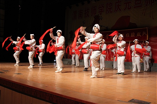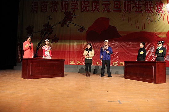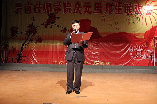 玉兔欢歌辞旧岁,巨龙起舞迎新年。12月23日,我院2012年师生元旦联欢会在开发区卫星测控部队礼堂激情上演。院长曲志勇发表了新年贺词,他代表学院对全院教师一年来的辛勤工作表示感谢,向大家致以节日的问候,并祝同学们新年快乐! 充满乡土气息的腰鼓《开门红》拉开了联欢会的帷幕。整场晚会流行与古典兼收,温情与火热并举,形式多样,精彩纷呈。歌曲《一眼万年》、《我的麦克风》、《向往的神鹰》、《歌剧2》等轮番登场,或浪漫温馨,或轻快悠扬,或活泼动感,风格各异,变幻多姿。热舞《古丽》、《lucky》,街舞《缤纷色彩》用动感的舞步和柔美的肢体彰显了同学们丰富多彩的校园生活和活泼阳光的青春风采。诗朗诵豪迈奔放、意境深远,戏曲串烧《女驸马》、《十五贯》底气十足,刚中带柔,赢得了在场观众的阵阵掌声。 参加演出的教师们也毫不逊色,由研究生教师自编自导的小品《非雷勿扰》用惟妙惟肖的表演、令人捧腹的角色反串,引得观众笑声连连。乐器合奏《地道战》组曲,配乐诗朗诵《相信未来》,独唱《就恋这把热土》、《灞桥柳》将整场晚会的气氛推向了高潮。最后,晚会在热烈的舞蹈《欢乐地跳吧》中圆满落幕。 在长达两个小时的联欢会里,师生们用自己特有的方式,展现青春风采,表达新年祝愿。本次联欢会充分展现了我院师生良好的精神风貌,也为2011年画上了圆满的句号。