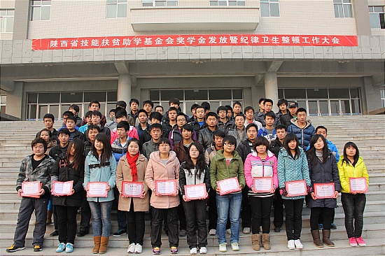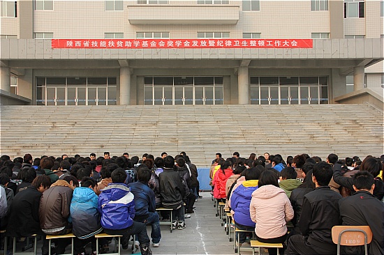 12月27日下午,学生处组织全体学生在教学楼前广场召开了陕西省技能扶贫助学基金会奖学金发放暨纪律卫生整顿工作总结大会。党委副书记李东旺、副院长雷立斌及有关处室、各系、各班主任老师参加了会议,会议由团委书记、学生处副处长李峰主持。会上学生处资助中心主任李新海宣读了荣获省技能扶贫助学基金会奖学金学生名单,学生处公寓管理科科长吴长立宣布荣获文明宿舍集体名单及优秀舍长、文明宿舍标兵名单,学生处李植处长宣读了纪律卫生整顿违纪学生的处分决定。最后,党委副书记李东旺就创建平安校园,文明宿舍建设,校园文化建设,安全等工作作了重要讲话。 附:荣获2011年度陕西省技能扶贫助学基金会奖学金学生名单