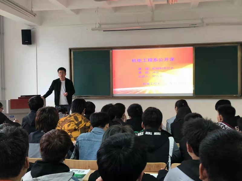 4月20日下午,机电工程系在教学楼五楼多媒体教室举行公开课,何方荣老师主讲,课题为冲压。全系教师参与听课。