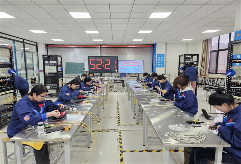 决赛阶段。12月18日清晨,竞赛场地布置就绪,五大赛项依次开启比赛:网页设计赛场,选手编写代码,页面雏形渐显;新媒体赛场,选手完成视频剪辑与直播互动控场;物联网赛项选手完成复杂系统搭建。 12月23日,网络布线与网络搭建赛项压轴登场,选手精准操作,完成组网与调试。各赛道采用“现场实操+成果演示+专家答辩”综合考评模式,指导教师担任评委,全面考察选手技能与问题解决能力,融入“工匠精神”评价标准。当日,成绩评定与公示完成,竞赛全程同步开展纪实拍摄。 复盘沉淀,凝聚发展共识(12月24日—2026年1月5日)