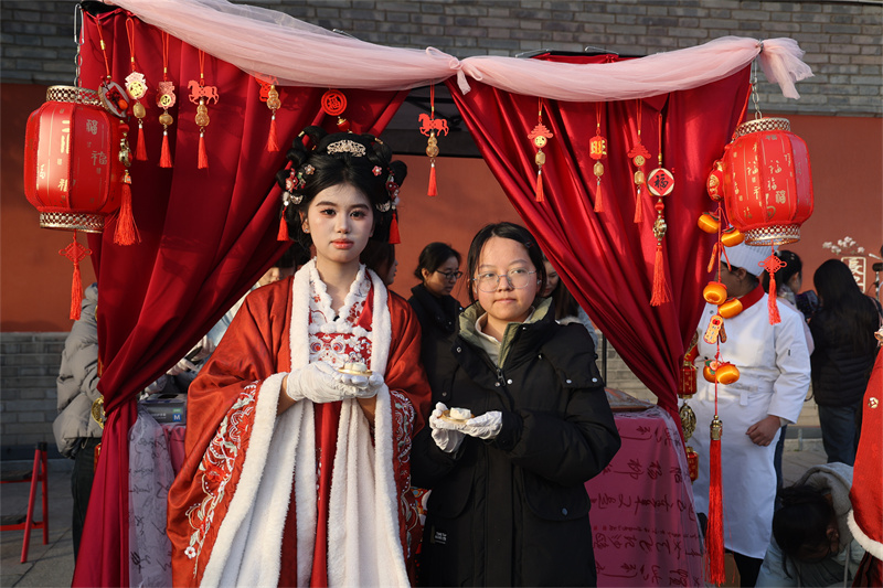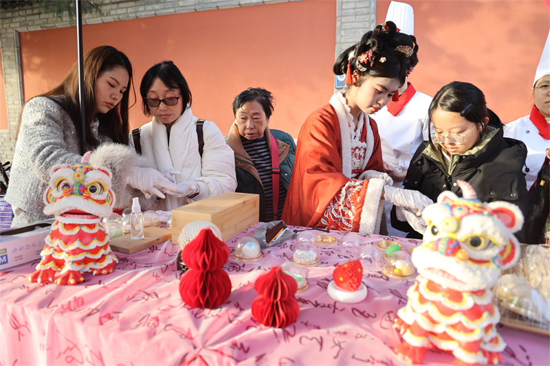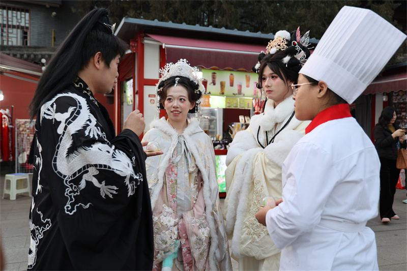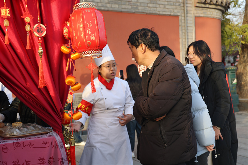 活动现场,学生们身着精心设计的唐装造型,成为一道道流动的文化风景线。他们向游客展示了团队长时间研发创新的一系列唐菓子产品,通过亲身示范和细致讲解,带领参与者深入了解这项非遗技艺的历史渊源与制作精髓。