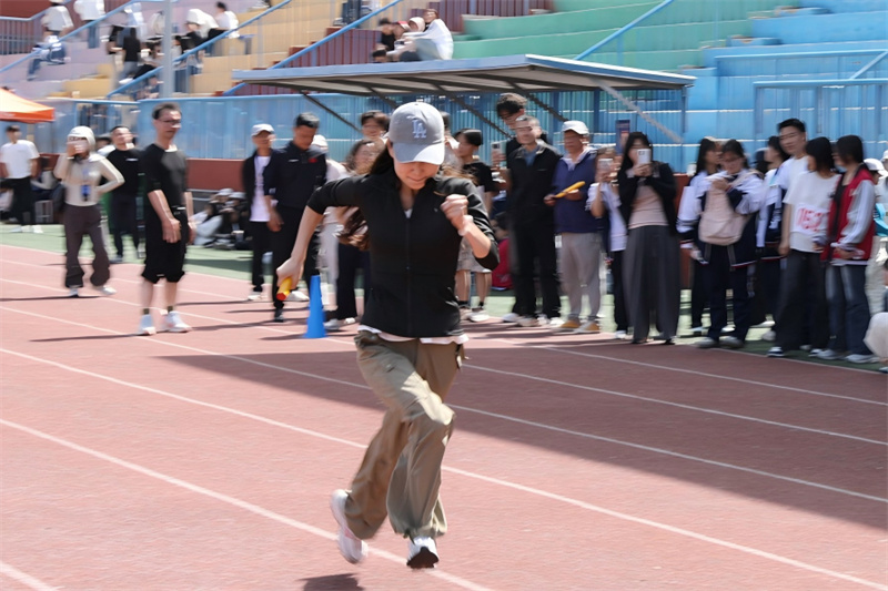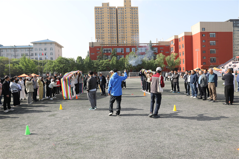 在百人方阵的引领下,各项集趣味性、协作性与竞技性于一体的赛事相继展开,现场气氛热烈,欢笑与助威声此起彼伏。 “接力赛跑”中,各代表队你追我赶,配合默契。每一次接力棒的传递,不仅是速度的交接,更是信任与责任的传递,奔跑的身影彰显着无限激情。