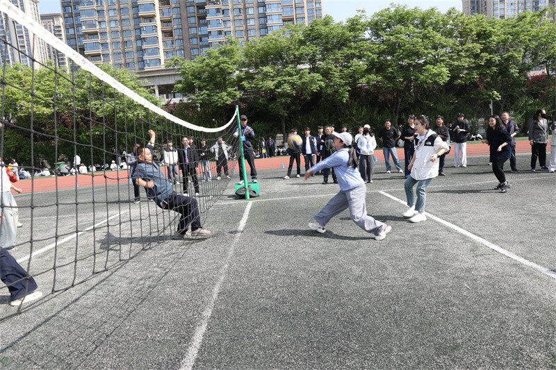 本届新增的“排球对打”项目成为赛事焦点。球网两侧,发球、垫传、扣杀,动作一气呵成;攻守之间,精彩回合频现。这不仅是对力量与技巧的展示,更是团队协作精神的生动体现,为传统趣味运动会注入了新的运动活力。