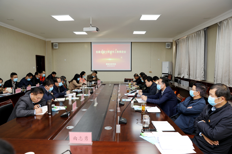 10月21日,我院召开全国文明城市创建工作推进会,对创建文明城市工作进行再部署再动员。会议由党委书记曲志勇主持,学院领导及各处系负责人、各党支部书记参加会议。